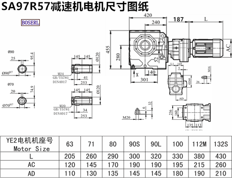 SA97R57DRN90M4_SA97R57DM80M4_SA97R57DVE100M4_SA97R57DR112M4減速機(jī)電機(jī)型號大全